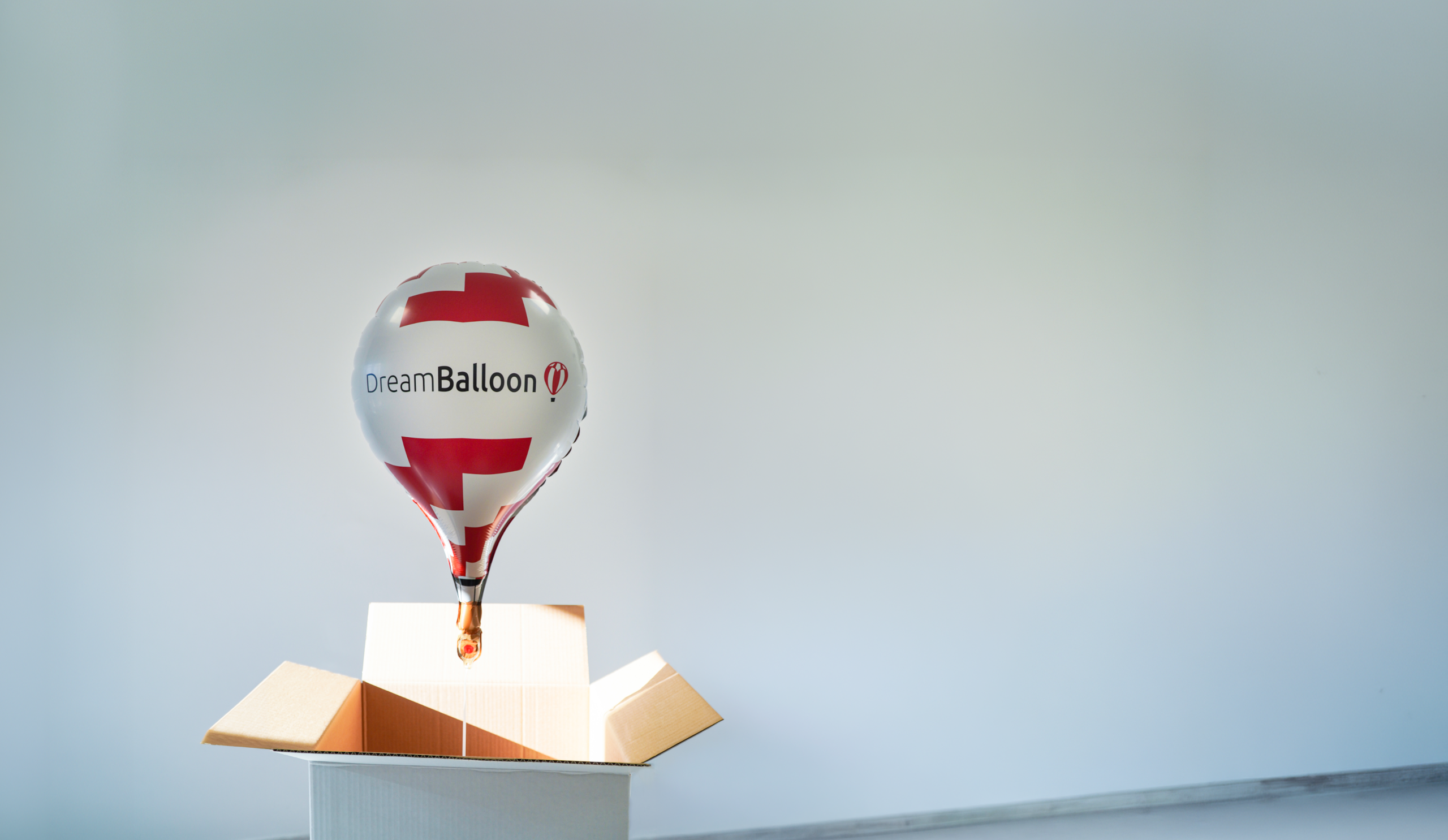 Öppna locket och en DreamBalloon heliumballong stiger upp med flygbiljetten hängande i ett band. Upppackningsögonblicket är halva gåvan. Mottagaren väljer själv passande flygdag och flygregion.