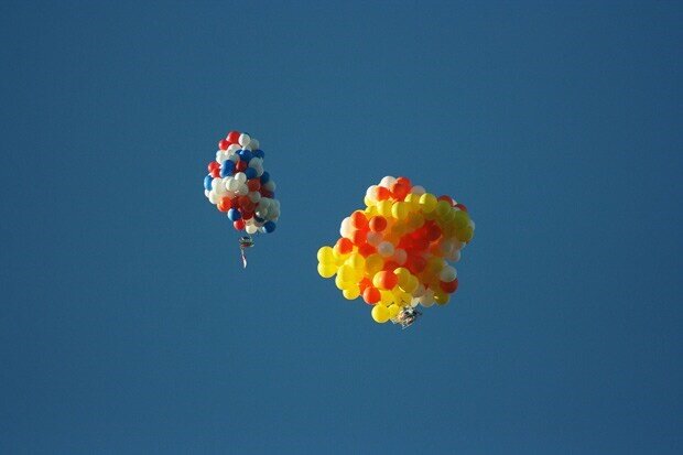 Varmluftballonger kan inte styras. De följer vindens riktning, och man vet aldrig helt exakt var man kommer att landa. Efter ca 50 minuter börjar piloten att se sig om efter en bra landningsplats.