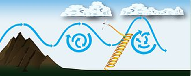 Nedan är en bild som visar hur luften kan bete sig efter slutet av en hög bergskedja: