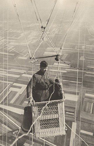 På bilden: En amerikansk major i korgen på en observations-/spaningsballong som flyger över territorium nära frontlinjen i Frankrike.Många kanske undrar om det var säkert för piloter att hantera varmluftsballonger, med tanke på att ballongerna och deras tyghöljen inte gick att jämföra med mer traditionell militär flygplansutrustning. Det är en mycket berättigad fråga.